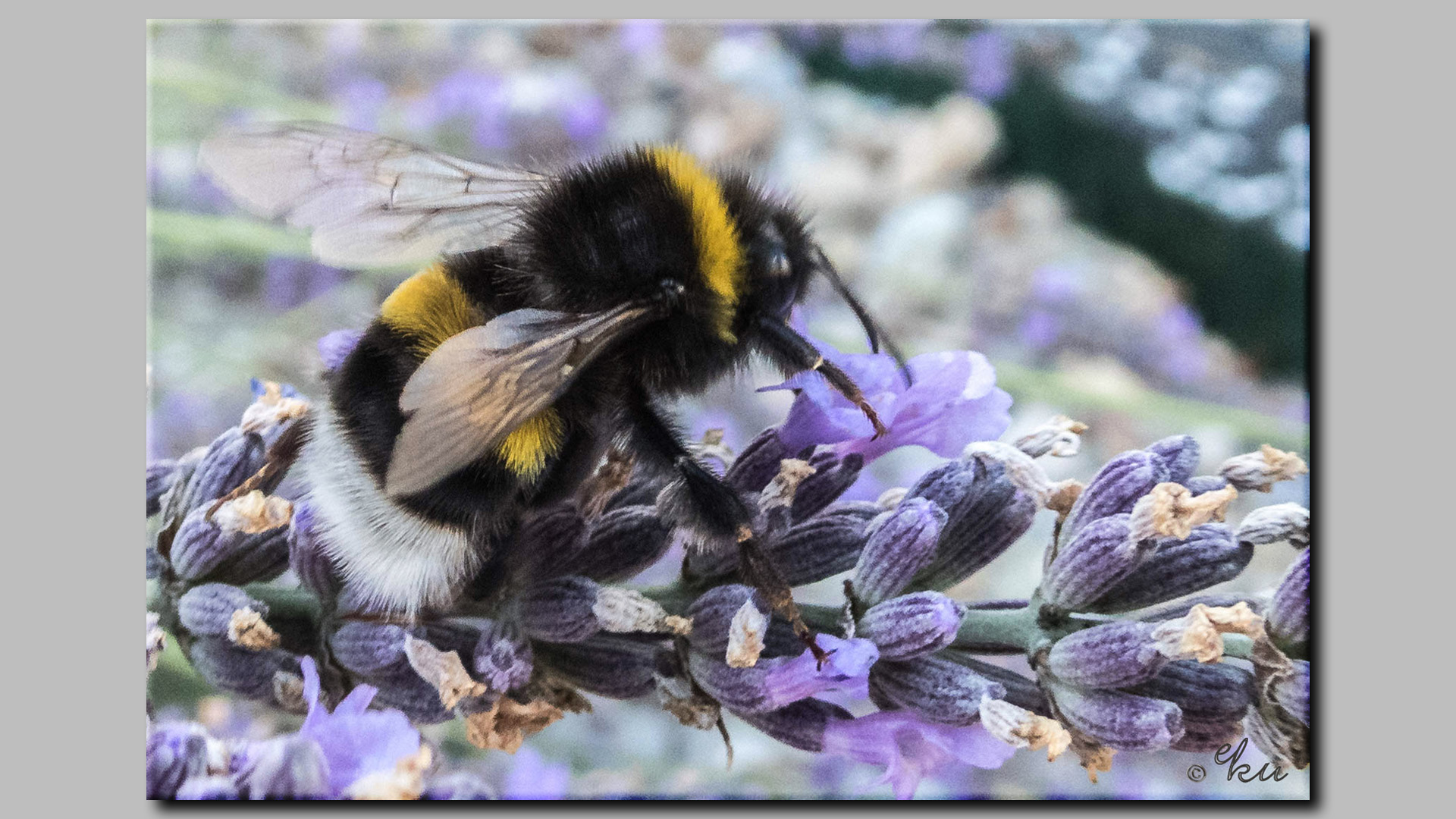 Eine Hummel auf dem Lavendel in unserem Garten. Habe dafür fast eine halbe Stunde gebraucht.