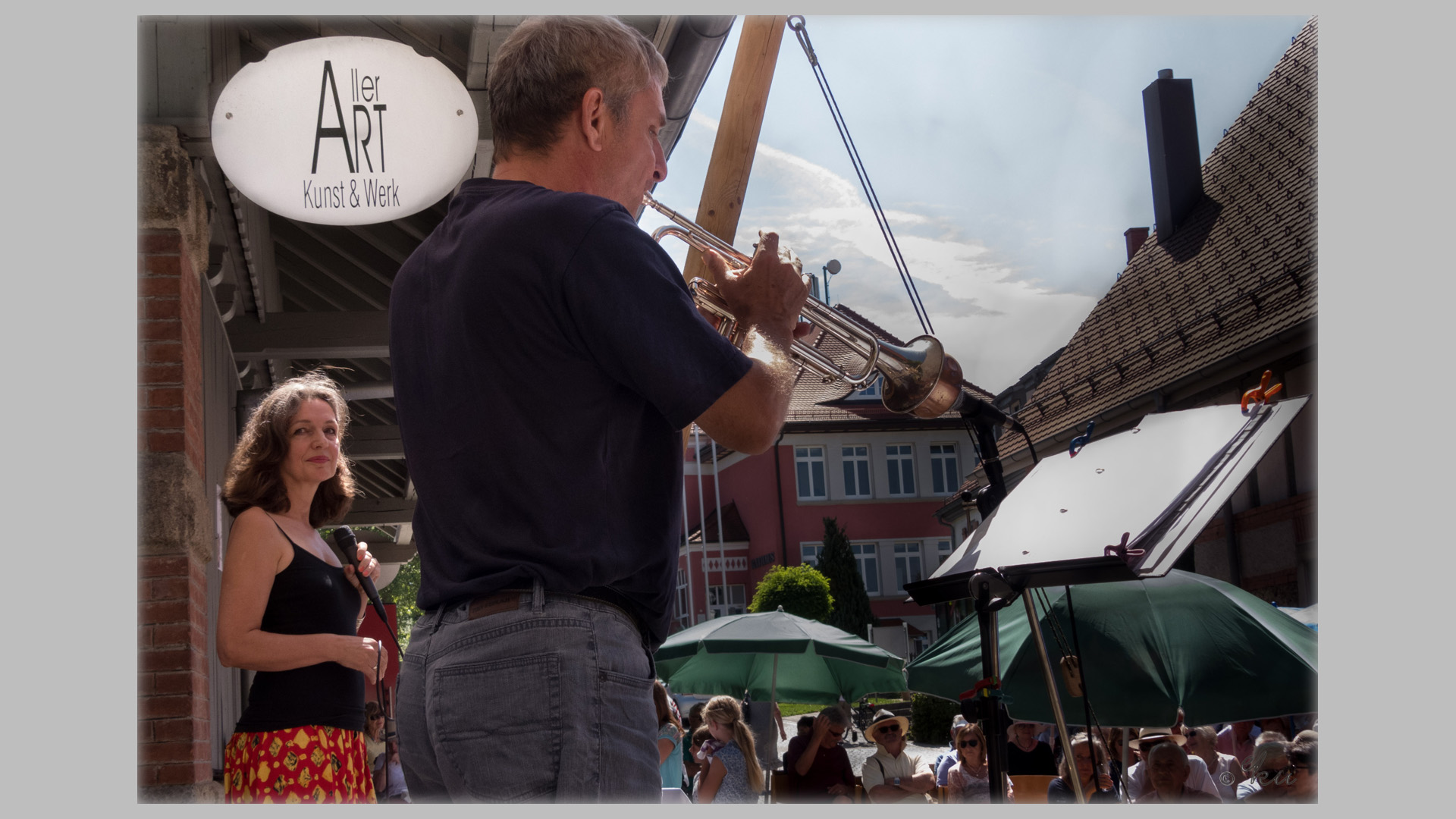 Carsten Stamm an der Trompete, Andrea Rehm Gesang.